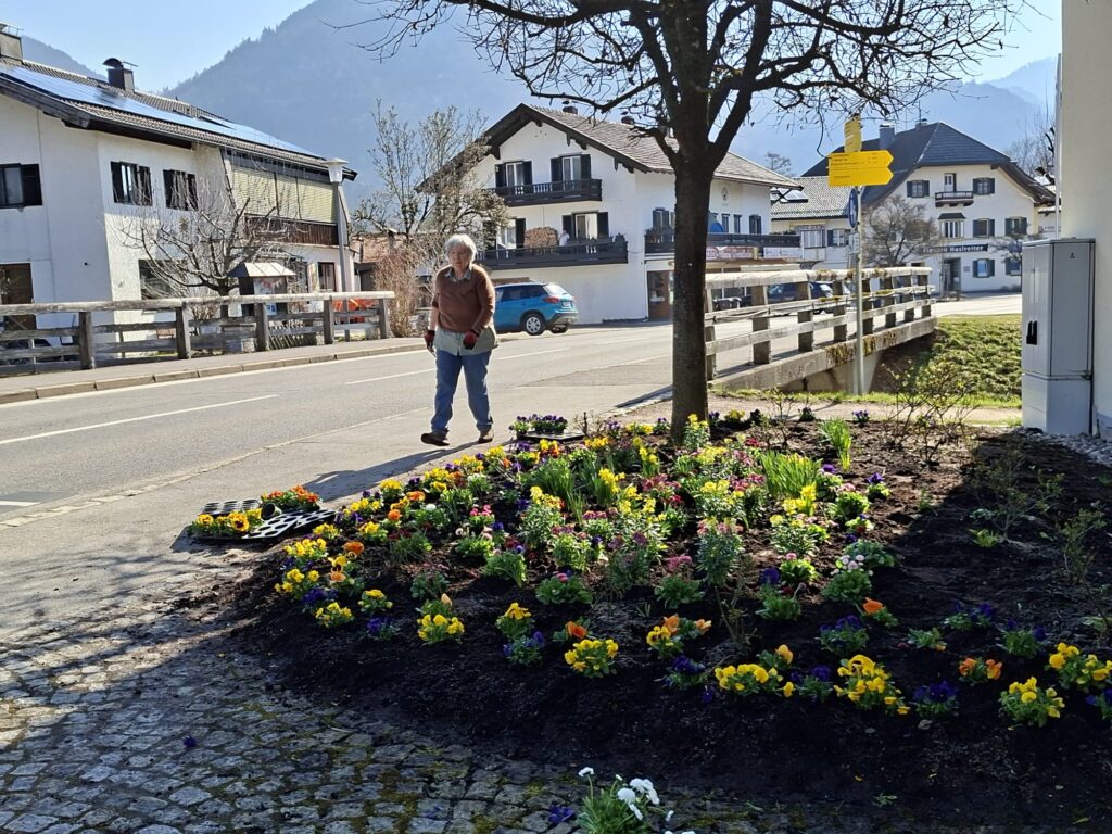 Wie jedes Jahr hat eine Gruppe des Gartenbauvereins Unterwössen die Rathausbeete mit Frühlingsblühern bepflanzt. Stiefmütterchen, Hornveilchen, Goldlack, Bellis und weitere Frühlingsblumen wurden von den fleißigen Helferinnen und Helfern in harmonischen Gruppen arrangiert. Damit sind die Rathausbeete wieder ein Augenschmeichler für Einheimische und Gäste.
